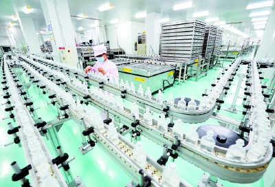 石家庄一家制药有限公司的工人在医药生产车间工作。