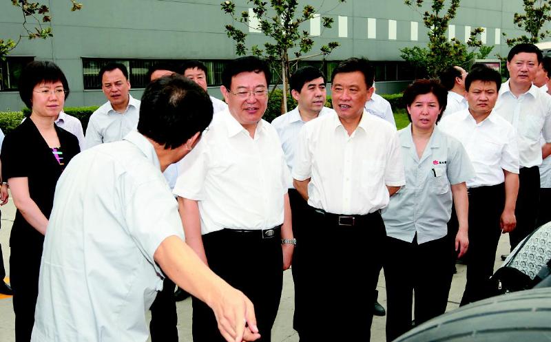 (李华栋施雪)图为副省长李金柱在延长石油集团董事长沈浩等的陪同下,到延长橡胶半钢子午线轮胎生产线调研。