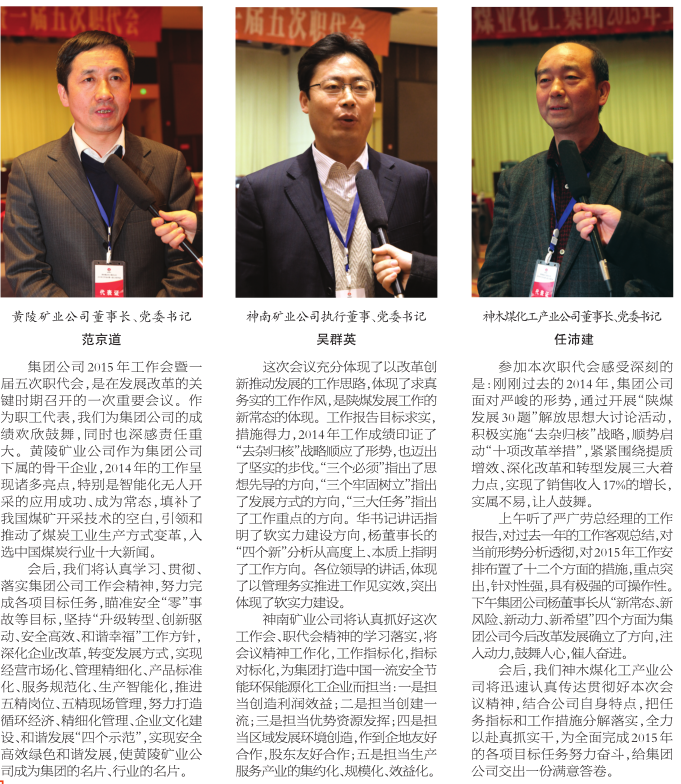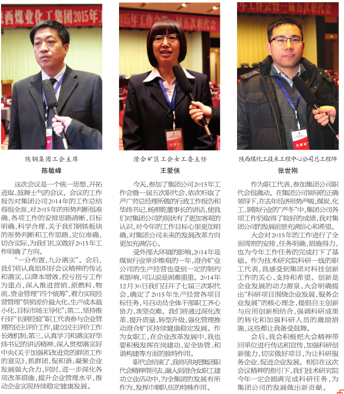 您当前的位置:首页 > 新闻 > 企业新闻 陕西煤业化工集团公司2015年工作会暨一届五次职工代表大会代表访谈