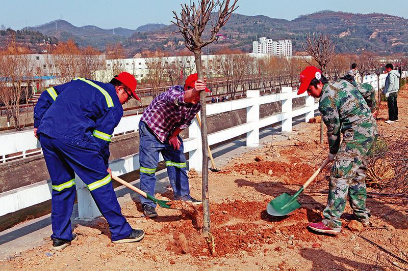3月12日下午,黄陵矿业公司志愿者协会组织矿区志愿者在该公司矿山公园开展了“绿化环境,远离雾霾,我为矿区添绿色”植树活动。近两个小时的时间里,在300余志愿者精心栽培下,600余株云杉、红叶李整齐地竖立在矿山公园的山坡上。
