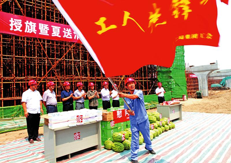 8月7日,由中铁七局西安铁路工程公司承建的西安后围寨互通式立交尚航路主线桥梁主体工程封顶。当日,中铁七局集团工会、西铁工程公司在此举行“工人先锋号”授旗暨夏送清凉慰问仪式。