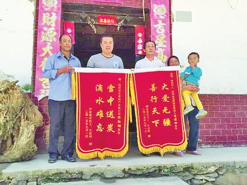 看到本报9月2日三版报道的《农民工方启祥的期盼》一文后,铜川市劳动模范,陕西好人唐孝标近日和福建爱心人士陈淑明一起来到商洛市镇安县青铜关镇,看望和慰问因交通事故受伤的农民工方启祥,两位爱心人士共同向其捐款5000元。图为唐孝标(右二)、陈淑明(左二)和农民工在一起合影留念。