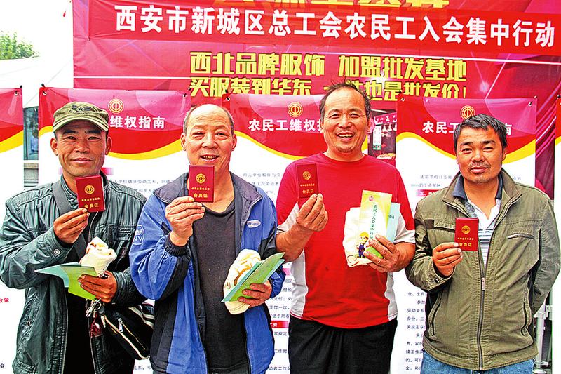 近日,西安市新城区总工会在长乐西路华东万悦城开展了农民工入会集中行动。据了解,行动主要以市场中打工的农民工、在建项目农民工、保洁员农民工为主。活动现场为农民工办理入会,发放会员证和农民工维权手册指南、就业培训卡,免费为农民工及其子女、家属提供技能培训,指导困难保洁员农民工办理加入区工会帮扶网,做到一站式服务。