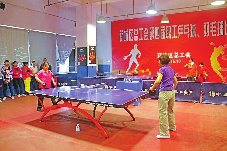 10月22日,西安市新城区总工会举办第四届职工乒乓球、羽毛球比赛。全区共37支代表队,400余人参加比赛。本报记者钟洁 摄