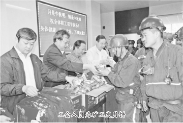 在每一名早班人员都领到慰问品之后,工会工作人员又将剩余的月饼和红腰带送到每一个队部,嘱咐区队领导一定要让各班每一名职工都吃到月饼。“这不是简单的月饼,这更是一种态度,我们只有关心职工、爱护职工,职工才肯留下,和我们一起共建矿山。”合阳公司工会主席同新立说。(王源)