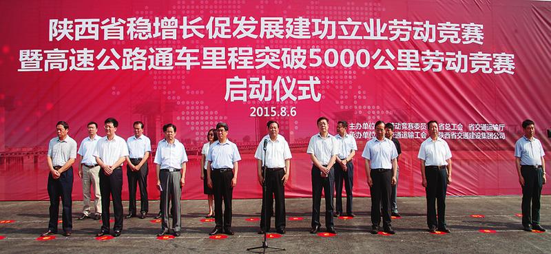 8月6日,以全省高速公路通车里程突破5000公里为契机,在西咸北环高速公路兴平建设工地,随着副省长姜峰高声宣布“启动”,一场规模空前的全省性劳动竞赛拉开帷幕。