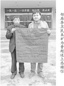 多年的煤矿工作让曹超与矿山、矿工结下了深厚的情缘,身边工友生活上的冷暖,工作的苦与乐也使他时常关注与牵挂。机电队职工李丽霞于2013年5月份确诊患有乳腺癌,随后在西京医院进行化疗及手术治疗,单单今年年初就花去医疗费用30余万元,期间爱人为了照顾她也一直陪伴左右,以至于无法正常上班,经济收入微薄,加之孩子还在上学,目前家庭十分困难。队上组织捐款活动,曹超一笔捐了5000元。当时区队干部职工都被他这一大手笔震惊了。而他仍是像往常一样低调又淡然的说道:“每次听说李姐要请病假化疗我就感到惋惜和心痛,她在难中,除了能做这些就只能祝愿她能早日康复,回到工作岗位上来”。谈起工友李丽霞的病情曹超一脸愁容。