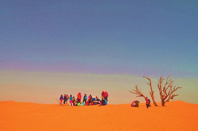 躺在软沙上小憩了会儿,醒来看见从沙漠的另一个方向迎面走来一群背包客。攀谈后才知他们是徒步旅行迷路了,无意走进这里。