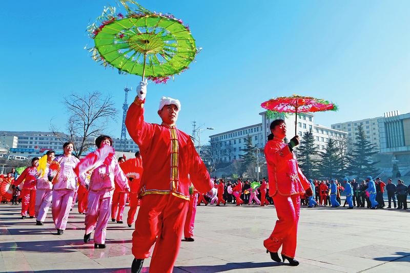 2月8日,农历正月初一,铜川矿业公司下石节矿区锣鼓喧天、热闹非凡,由近百名职工家属组成的锣鼓秧歌队以精彩的演绎,为矿区带来了浓浓的节日气氛。巨宏伟 摄