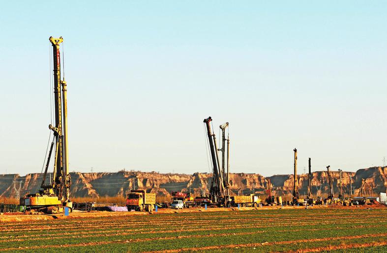 中铁十二局集团四公司蒙华铁路11标二工区承担全长7980.94M的汾河特大桥施工任务,他们严格按照业主规范要求,积极组织几十台钻机、挖机等大型机械设备展开施工,在蒙华铁路全线竞赛中取得第一名的佳绩。图为钻机施工场面。刘国占 邬泽满 摄