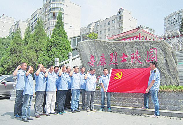 “七一”前夕,西安铁路局安康供电段党委开展主题党日活动,组织党员来到安康革命烈士陵园重温入党誓词,学习革命先烈英勇事迹,用实际行动兑现入党誓言。图为该段动力设备车间党员在烈士陵园重温入党誓词。张恒