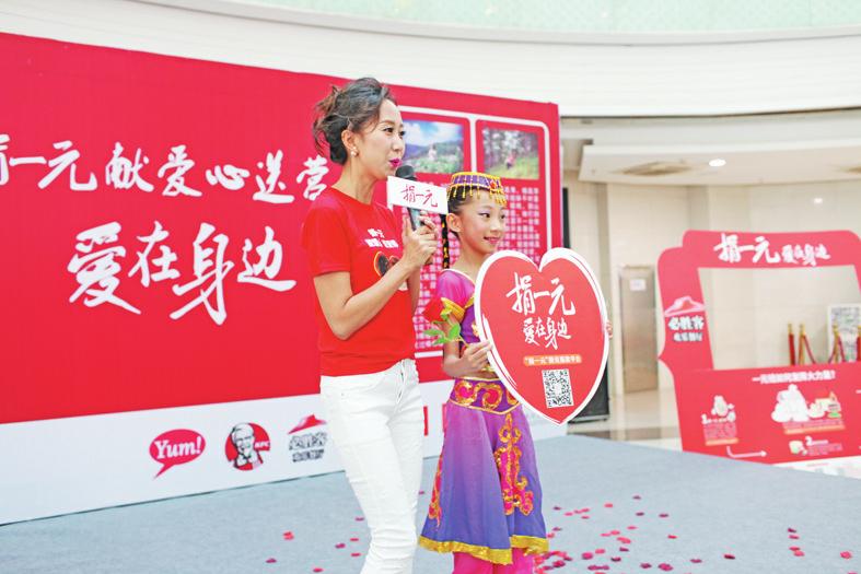 中国扶贫基金会联合百胜餐饮集团中国事业部共同发起的“捐一元”项目已经启动第9年募捐活动,8月20日至9月11日,爱心消费者均可前往肯德基、必胜客、必胜宅急送、东方既白餐厅,在点餐的同时捐出一元钱,为山区的孩子提供营养加餐。图为西安民乐园万达活动现场。许童 摄