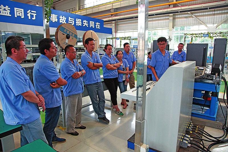 经过3个多月的探索研究,国内首款摊铺机成套电气系统振动测试平台在陕西建设机械股份有限公司试制成功,此设备的投入运行将极大地提高该公司主导产品摊铺机的一次交验合格率。图为9月6日,公司相关人员在现场观看电气系统振动测试平台首次现场测试装配完毕的产品。马甜张晋安摄