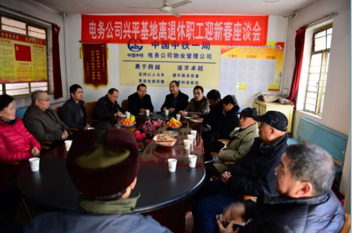 在老基地,慰问组上门走访了部分离休老干部,伤残职工和遗属,并与基地的离退休职工代表座谈。座谈会上,赵宏科介绍了电务公司2016年的生产经营情况和取得的新成就。樊兴飞重点宣传了中央“三供一业”分离移交工作的主要内容和目前的推进情况。与会离退休职工代表对电务公司历届领导班子坚持走访慰问,年年看望大家的优良传统表示感谢,祝愿公司发展再上新台阶。同时,就基地管理,配套设施改造等方面存在的问题,提出了中肯的意见和建议。