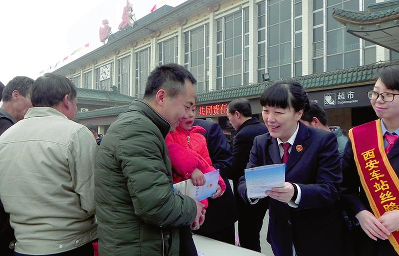 为进一步深化反腐倡廉“检企共建”工作机制,积极发挥“一站(段)一检察官”职能作用,确保铁路运输安全稳定。近日,西安铁路运输检察院和西安车站在火车站东广场共同开展法制宣传活动,为出行旅客提供法律咨询服务。