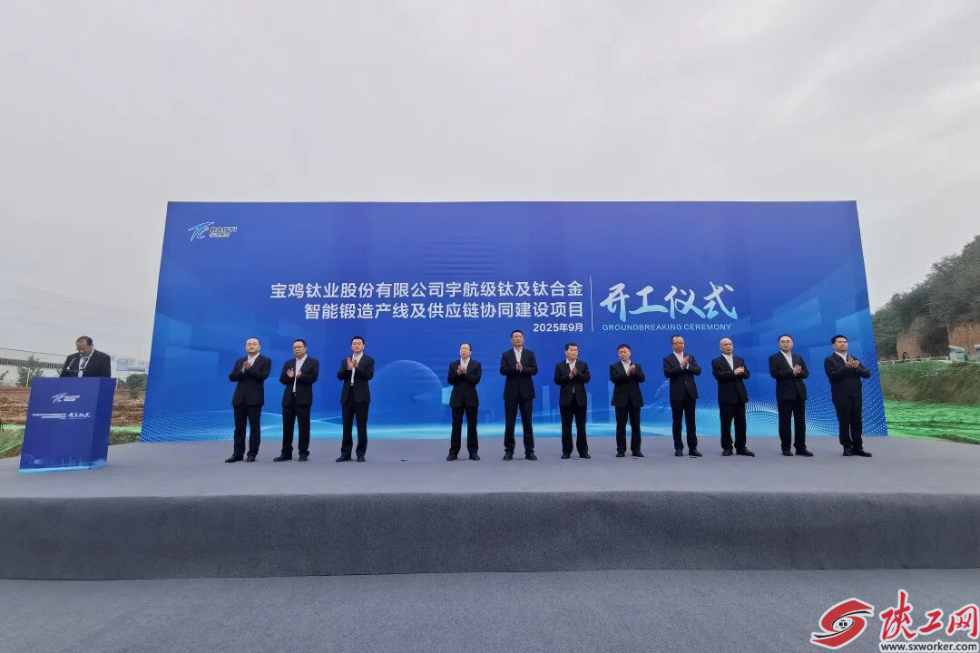 陕工网讯 9月26日,宝钛股份宇航级钛及钛合金智能锻造产线及供应链协同建设项目开工仪式在宝钛工业园举行。宝钛集团党委书记、董事长,宝钛股份董事长王俭出席并下达开工令;宝钛集团党委副书记、总经理陈战乾致辞;宝钛集团党委委员、副总经理、总工程师何书林介绍项目概况;宝钛集团党委委员、宝钛股份总经理张海龙主持仪式。