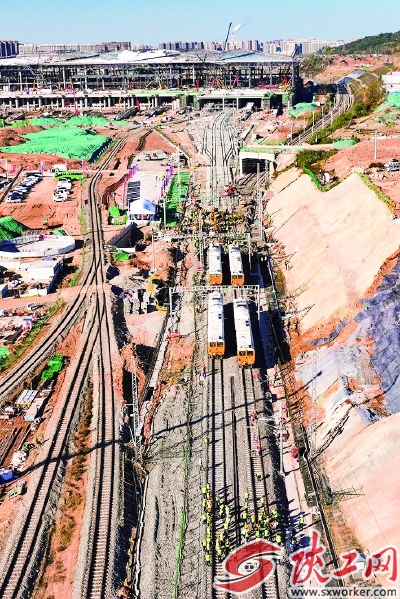 中国铁路西安局集团有限公司西安站改扩建工程指挥部组织各参建单位采用“立体交叉”协同作战模式,仅用10天便完成5.1公里站线铺轨、11组道岔安装等关键任务,为线路开通打下了坚实基础。