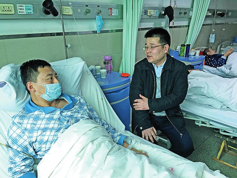 陕建华山建设有限公司工会主席焦健看望邓兴华职工郑月阳现场献血 “多亏了各级工会组织和兴华的同事们及时伸出援助之手,使我爱人渡过了难关,大家不是