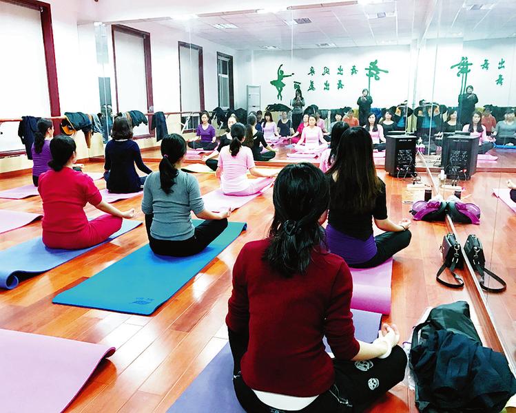为更好关爱女职工,丰富一线女职工业余文娱活动内容,西安铁路局西安东车辆段工会聘请老师为一线女职工开办瑜伽训练班。 图为11月17日,瑜伽训练班开