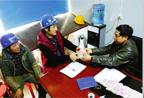 “开工资,开工资啦,大家快来领工资!”农民工马伟走出财务室,一边数着刚刚领到的“血汗钱”,一边欣喜若狂地高喊着,几乎整个项目部工地都能听到他的大嗓门。 12月27日上午10时,位