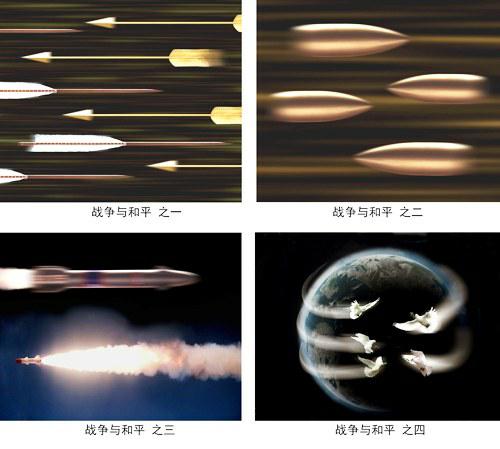 2004年,记得看了一场战争片电影,战场很惨烈,有几个血腥画面,看得我心里难受,萌生了要创作一幅和平题材的创意摄影。回想创作前期,为了拍摄子弹、炮弹
