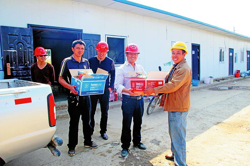 9月27日,中秋佳节之际,中铁七局三公司合阳公路项目部工会备上了精美的礼物,为奋战在合阳公路金水沟大桥一线的农民工们送去了中秋的祝福。马鹏辉 刘坤