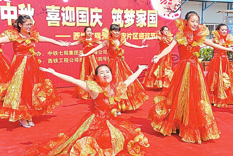9月26日下午,一场名为“情满中秋·喜迎国庆·筑梦家国”的联欢会在西安铁路工程公司西安地铁四号线项目部举行。图为联欢会现场。阎冬 韩正阳 摄