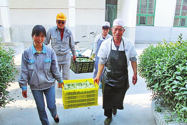 5月14日上午,宝鸡众喜凤凰山水泥公司宝鸡海螺分厂又给公司食堂送去了2框共70斤新鲜小青菜、生菜,这全是分厂“开心农场”种的菜。食堂大厨高兴地说:“职