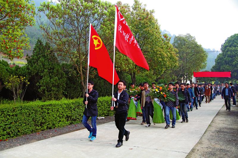 4月1日-5日陕钢集团汉钢公司组织开展了“清明祭英烈、共铸中华魂”社会主义核心价值观教育活动。图为4月3日该公司团委组织120余名团员青年步行前往汉中勉