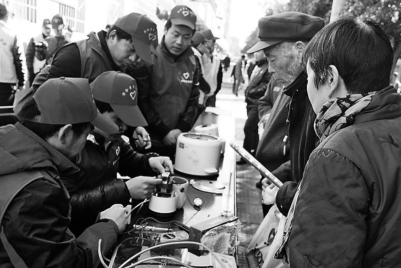 3月3日,澄合矿业公司的200余名青年志愿者走进社区,通过开展志愿服务活动,迎接第16个“中国青年志愿者服务日”的到来。图为志愿者在给社区居民义务修理家电。张新红 摄