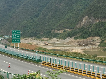 从青铜关镇以南的青梅村后坡隧道附近起,至青铜关镇以北的张家坪隧道处,几十公里的河面上堆积的河砂如小岛般星罗密布,河道里或堆积如山,或深不可测的水潭。