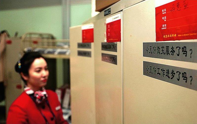 每位工作人员的更衣柜上都贴有标语,提醒自己时刻学雷锋
