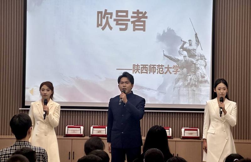 随后,碑林区建国路小学上演情景剧《穿越时空的小萝卜头》,陕西师范大学、西安外事学院、空军工程大学高校学子分别朗诵《吹号者》《土地的誓言》《战火中的婚礼》,展现新时代青年的使命担当。