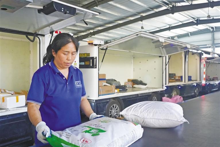 距离李庄社区不远处的杏林镇龙山村时通物流集散中心,货运车、快递车往来穿梭,分拣包裹的工人忙碌不停。“我们盘活闲置土地建成物流集散中心,分拣工、快递员都是周边村民。”龙山村驻村第一书记叶振川说,物流集散中心不仅方便了群众,还为周边村民提供了就业机会。