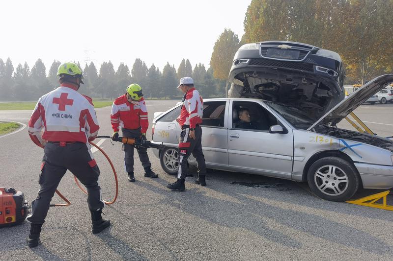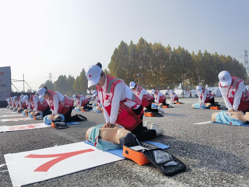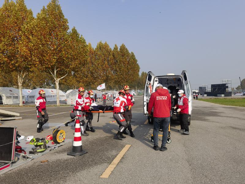 11月4日,“同心协力——2025”中国红十字应急救援西北协作区(陕西)联合演练在咸阳奥体中心举行。