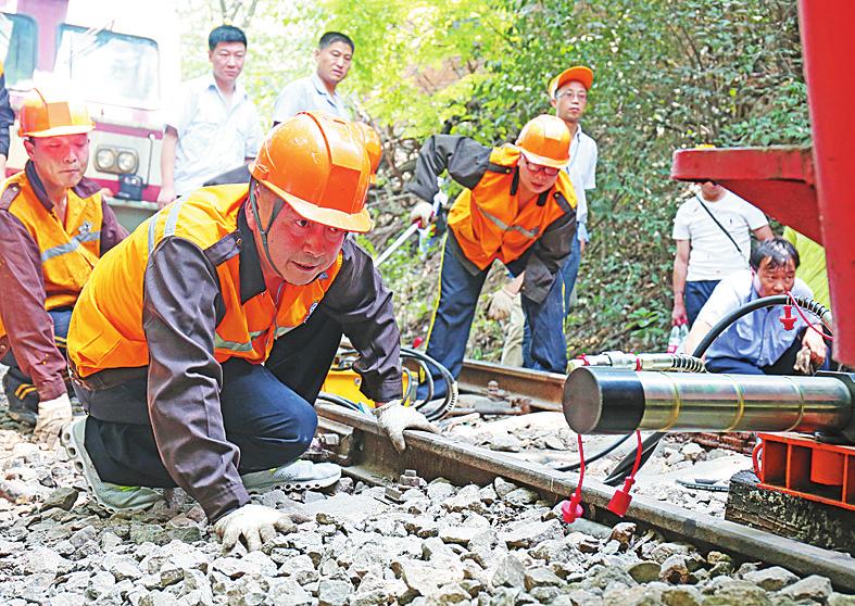 近期,宝鸡持续降雨,为进一步提高防洪应急救援水平,确保行车安全,西安铁路局宝鸡车务段积极组织抢险救援队开展模拟演练。图为该段在宝成铁路任家湾站举
