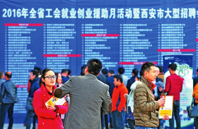 2月27日,2016全省工会就业创业援助月活动暨大型招聘会西安中心会场在曲江国际会展中心举行 刘强 摄 西安 招聘会上“冷热”两重天 2月2