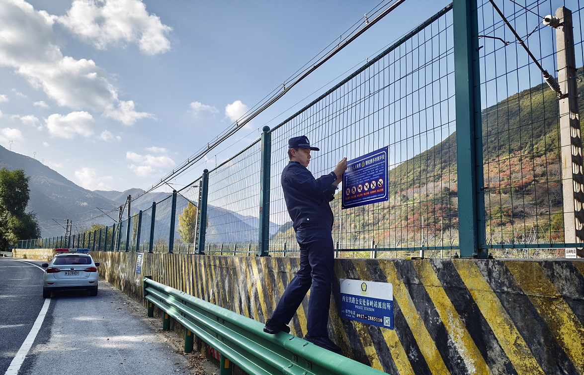 图片一:西安铁路公安处秦岭站派出所民警在公铁并行等线路复杂区段加装安全提示牌。 陕工网讯(通讯员 王小东)当前,正值冬季线路治安防控的重要时期,西安铁路公安处秦岭站派出所组织警力深入到铁路沿