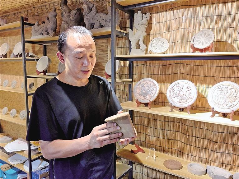 “不能单靠复制文物瓦当来传承技艺。瓦当爱好者更愿意收藏古代瓦当,复制瓦当的需求量很小。”李平说,他们仿制出土珍品瓦当制作拓片,满足文物研究和收藏市场需求;设计开发具有时代特色的新纹饰,赋予瓦当新的内涵;将传统瓦当艺术转化为书镇、装饰画等文创产品,让这项古老技艺以新的形式走进现代生活。