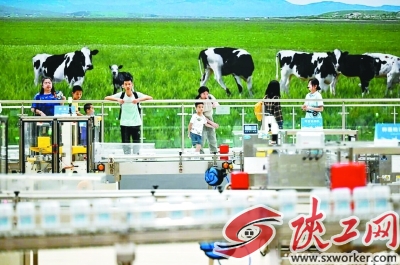 游客在液态奶全球智造标杆基地参观。