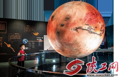小朋友在“走!去建设火星”硬科幻行星科学体验展上参观。