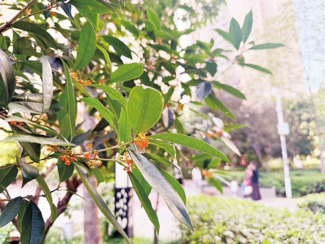 桂花盛开。 近日,西安被桂花的馥郁甜香温柔包裹,大街小巷、公园景区、校园社区,处处可见米粒般的小花在绿叶间簇拥。微风轻拂,“桂花雨”飘落,空气中满是醉人的芬芳。 去年9月底才闻桂花香,